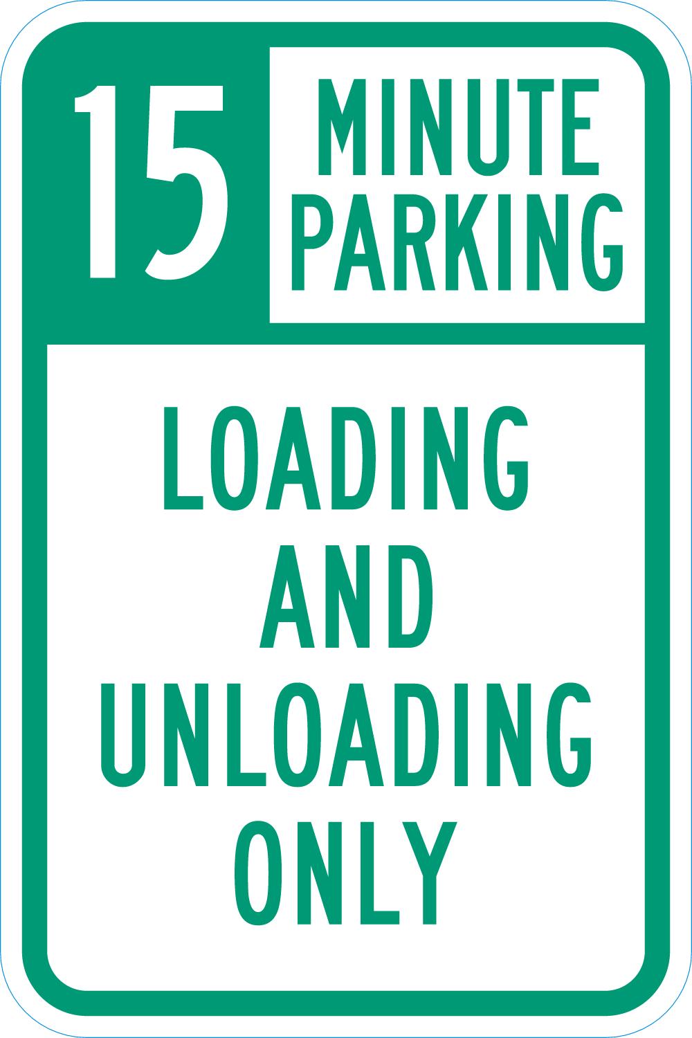 Time Limit Parking Sign: 15 Minute Parking, Loading And Unloading Only