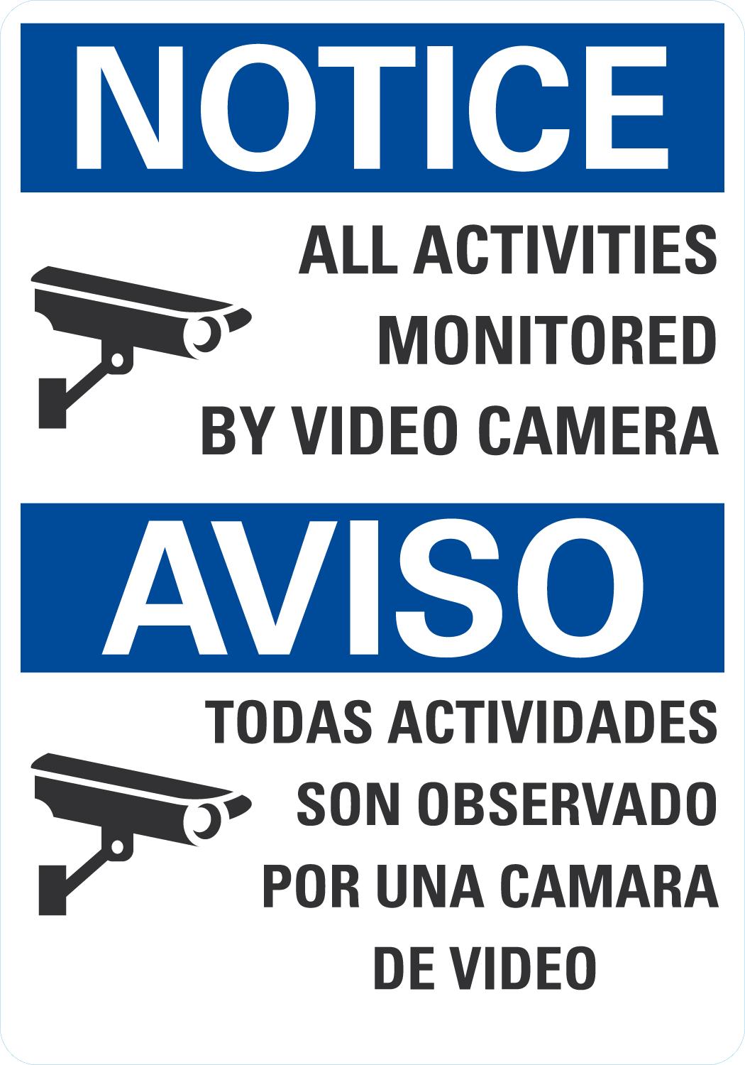 Bilingual Notice Sign: All Activities Monitored By Video Camera