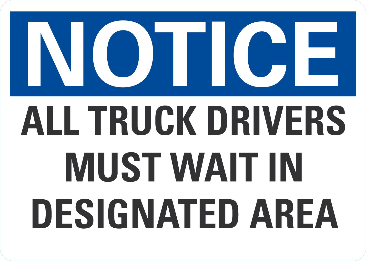 Notice OSHA Sign: All Truck Drivers Must Wait In Designated Area