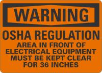 OSHA Warning Sign: OSHA Regulation - Area In Front Of Electrical Equipment Must Be Kept Clear For 36 Inches