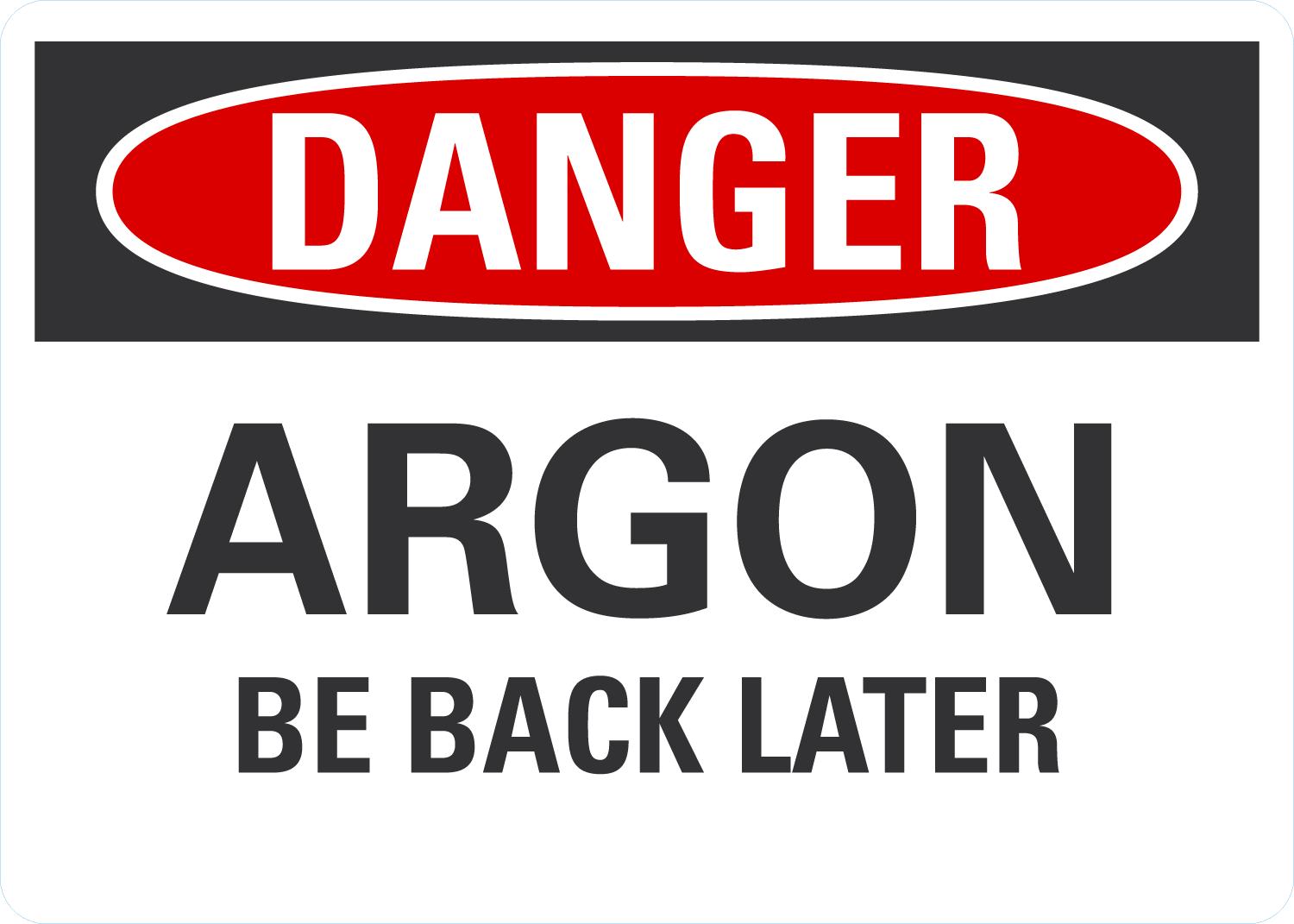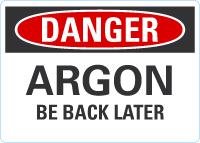 OSHA Danger Sign: Argon Be Back Later