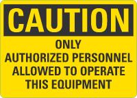Caution OSHA Sign: Only Authorized Personnel Allowed To Operate This Equipment