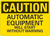OSHA Caution Sign: Automatic Equipment Will Start Without Warning