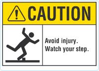 Caution ANSI Sign: Avoid Injury. Watch Your Step.