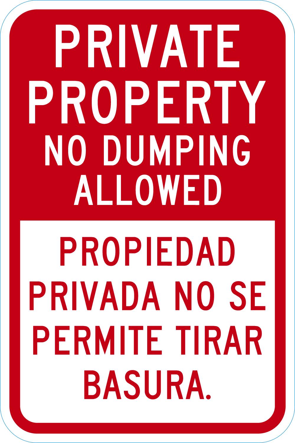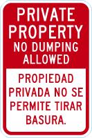 Bilingual Private Property Sign: No Dumping Allowed / Propiedad Privada No Se Permite Tirar Basura (English/Spanish)