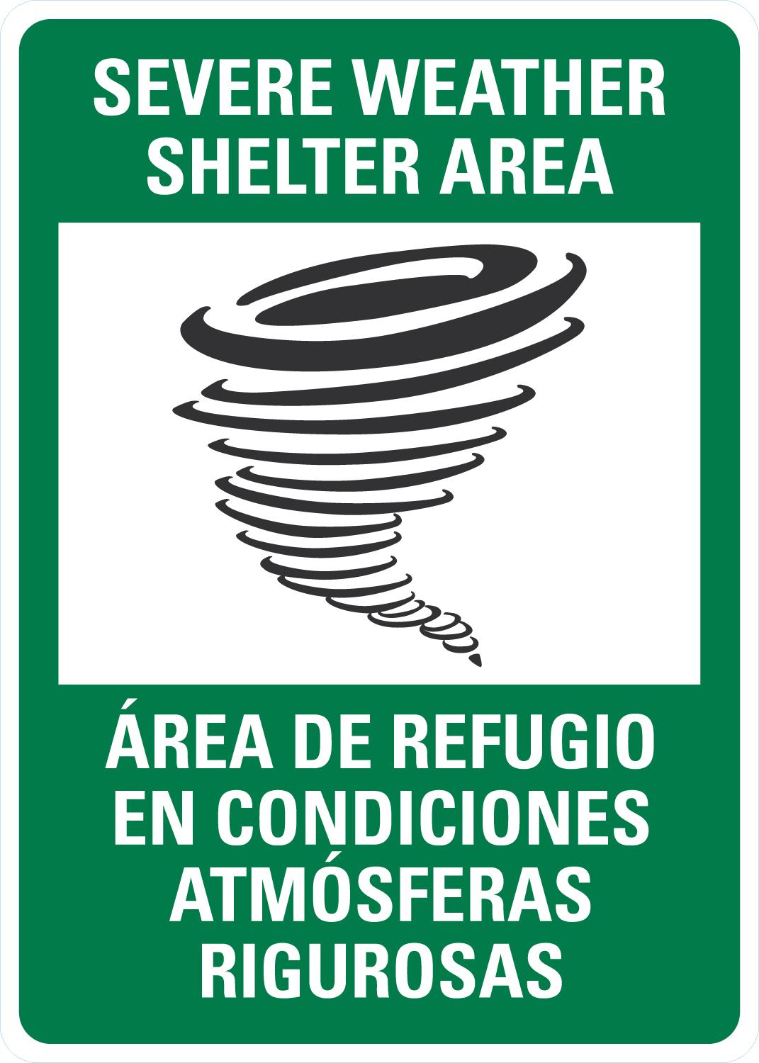 Bilingual Emergency Shelter Sign: Severe Weather Shelter Area