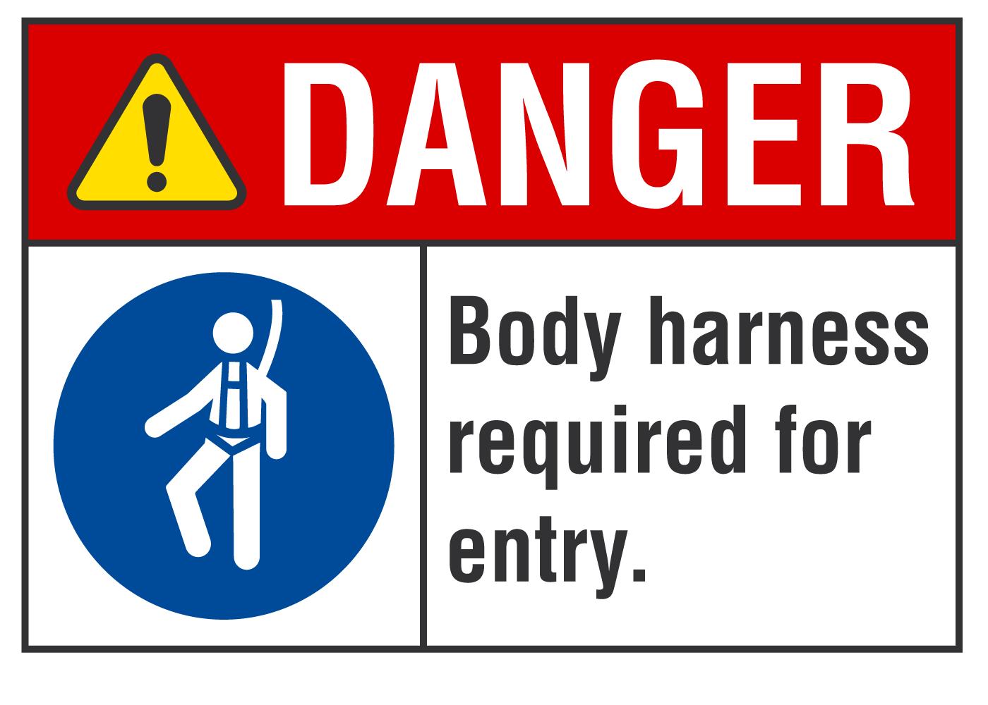 ANSI Danger Sign: Body Harness Required For Entry