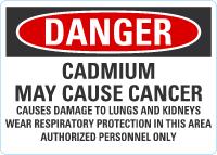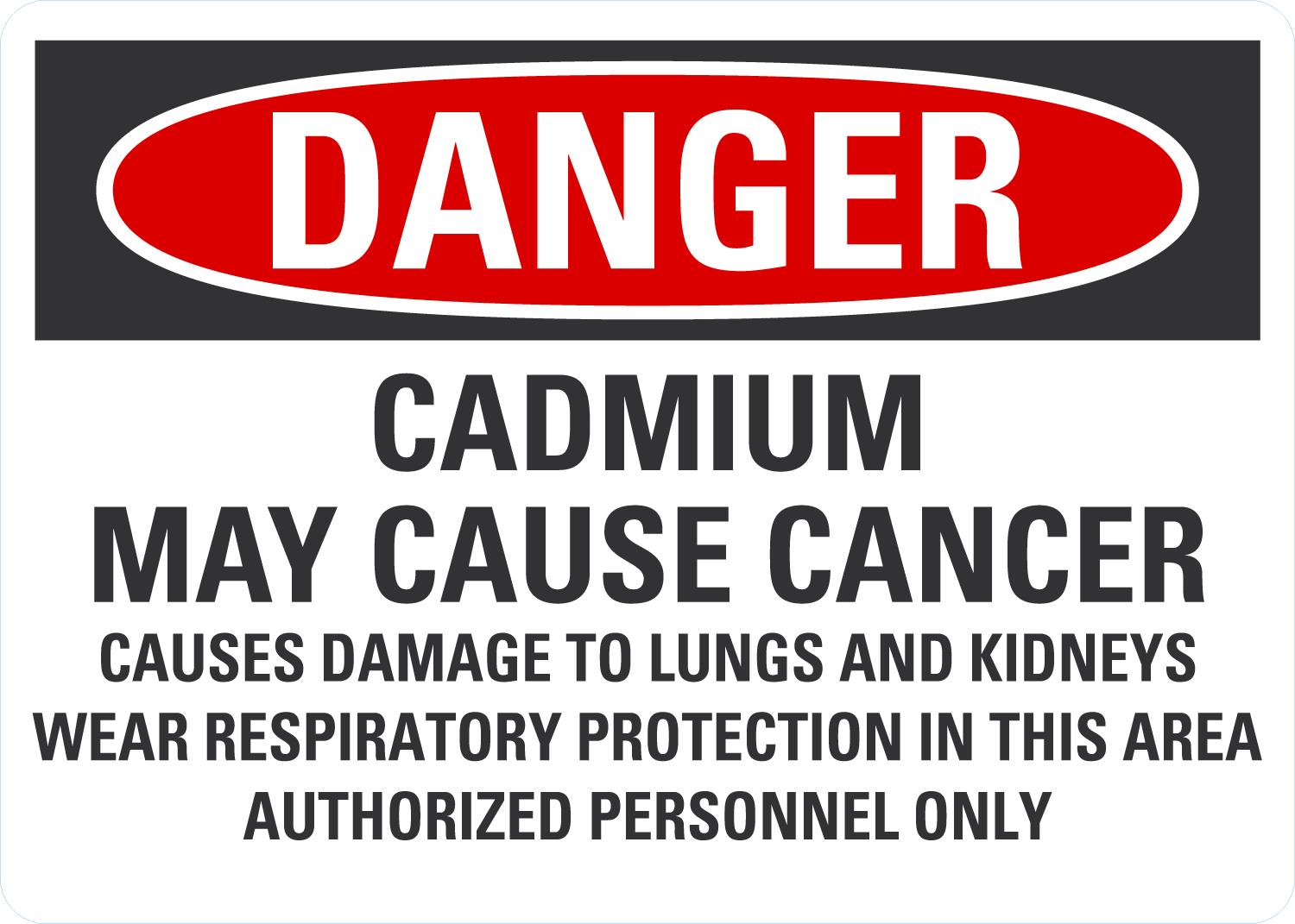 Danger OSHA Sign: Cadmium May Cause Cancer - Causes Damage To Lungs And Kidneys, Wear Respiratory Protection In This Area, Authorized Personnel Only