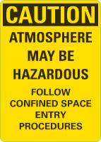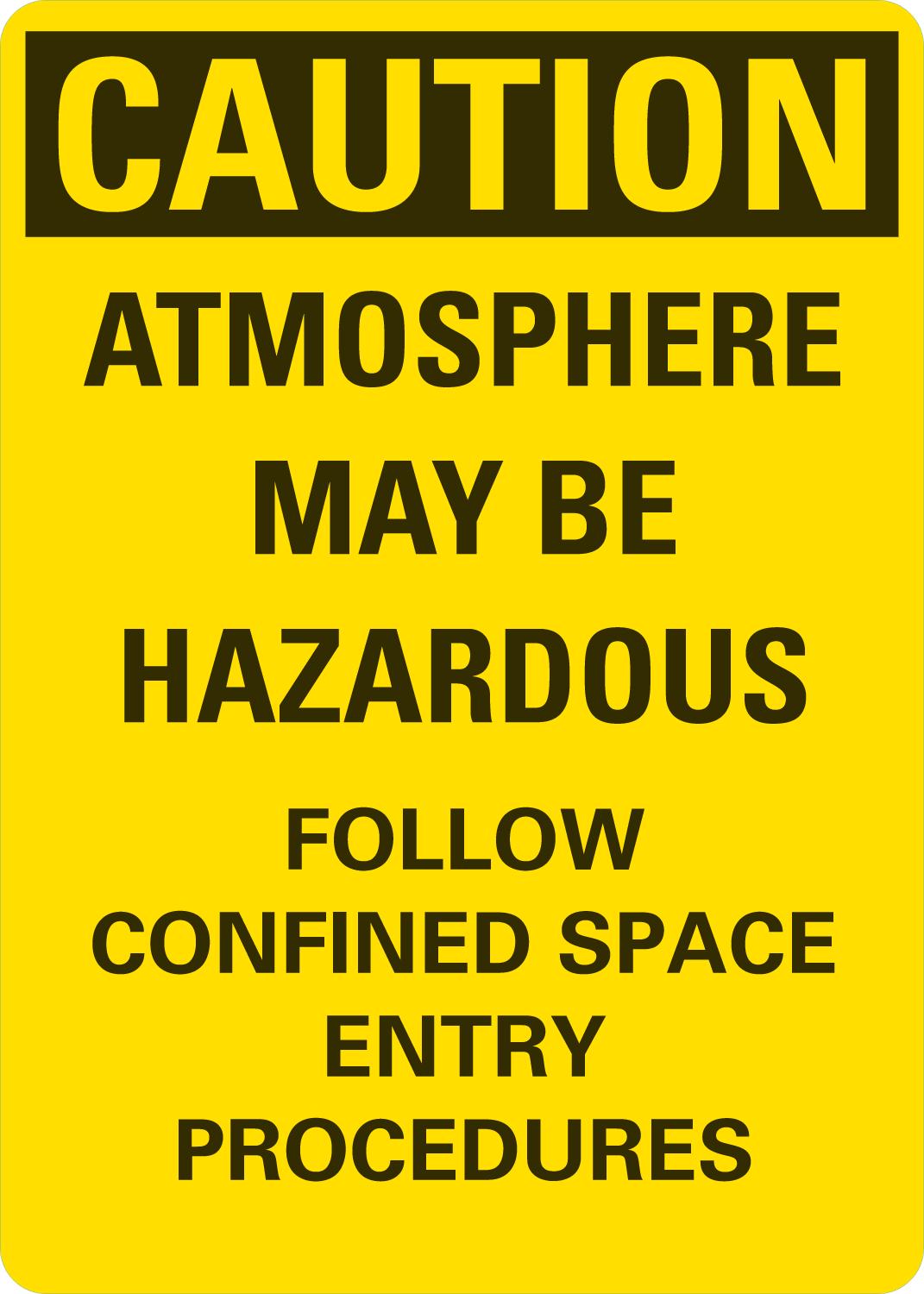 Caution OSHA Sign: Atmosphere May Be Hazardous Follow Confined Space Entry Procedures