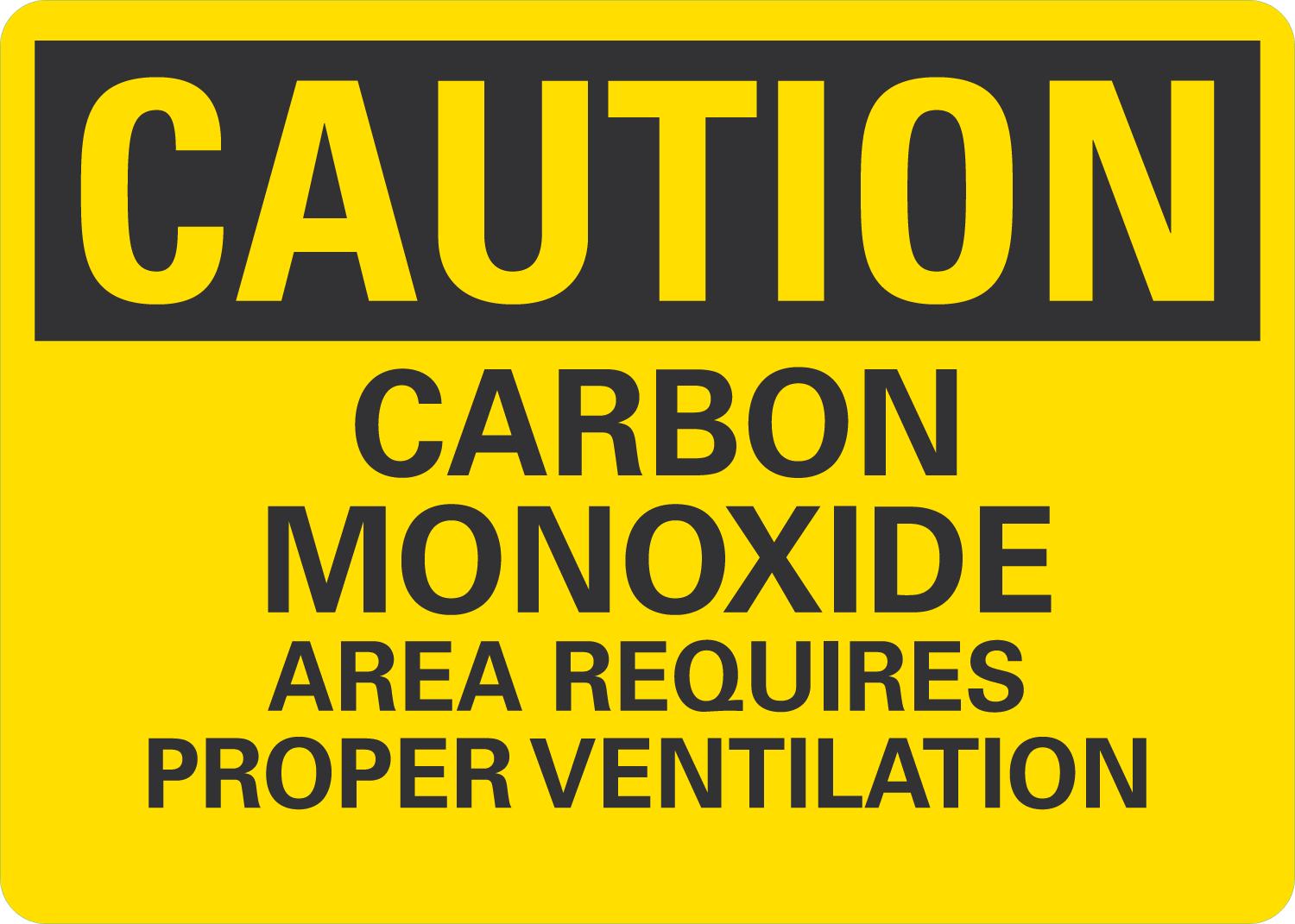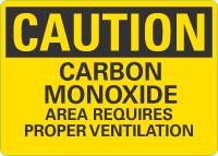 Caution OSHA Sign: Carbon Monoxide - Area Requires Proper Ventilation