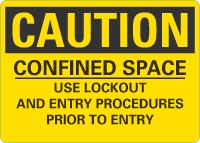 OSHA Caution Sign: Confined Space Use Lockout And Entry Procedures Prior To Entry