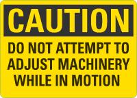 Caution OSHA Sign: Do Not Attempt To Adjust Machinery While In Motion