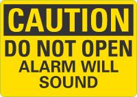 Caution OSHA Sign: Do Not Open, Alarm Will Sound