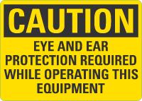 Caution OSHA Sign: Eye And Ear Protection Required While Operating This Equipment