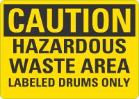 Caution OSHA Sign: Hazardous Waste Area Labeled Drums Only