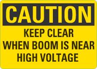 Caution OSHA Sign: Keep Clear When Boom Is Near High Voltage