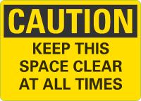 Caution OSHA Sign: Keep This Space Clear At All Times