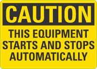Caution OSHA Sign: This Equipment Starts And Stops Automatically