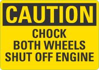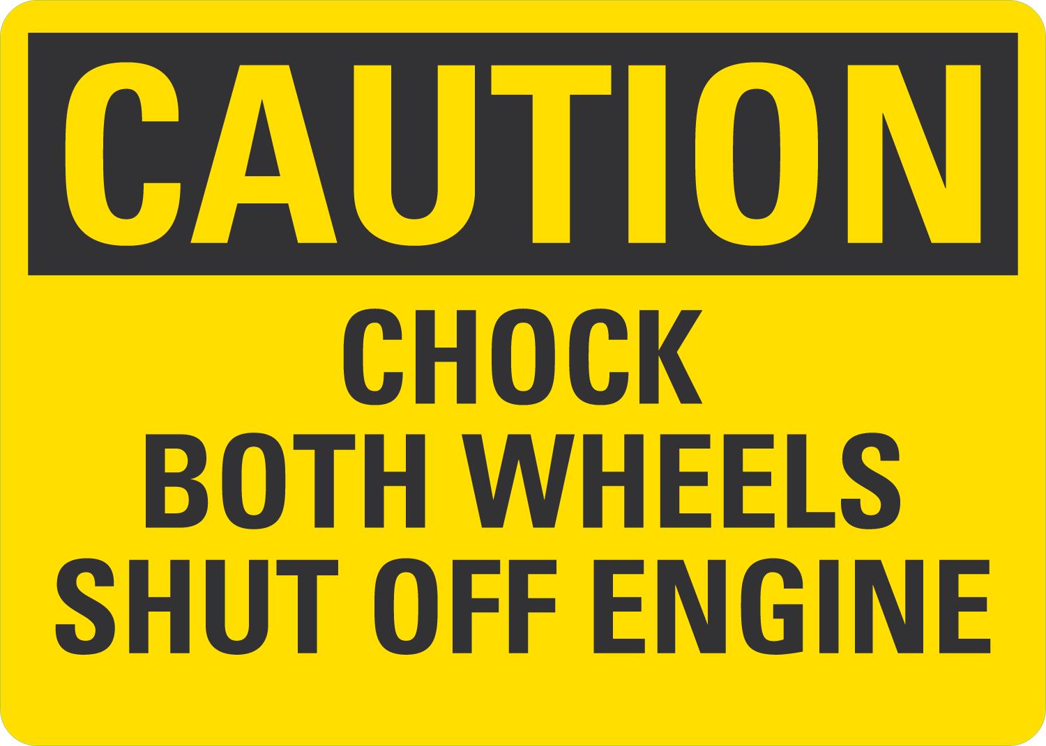 OSHA Caution Sign: Chock Both Wheels Shut Off Engine