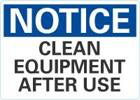 Notice OSHA Sign: Clean Equipment After Use