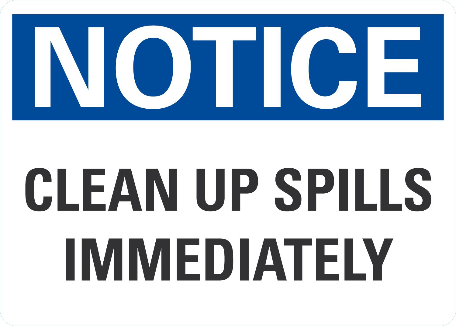 Notice OSHA Sign: Clean Up Spills Immediately