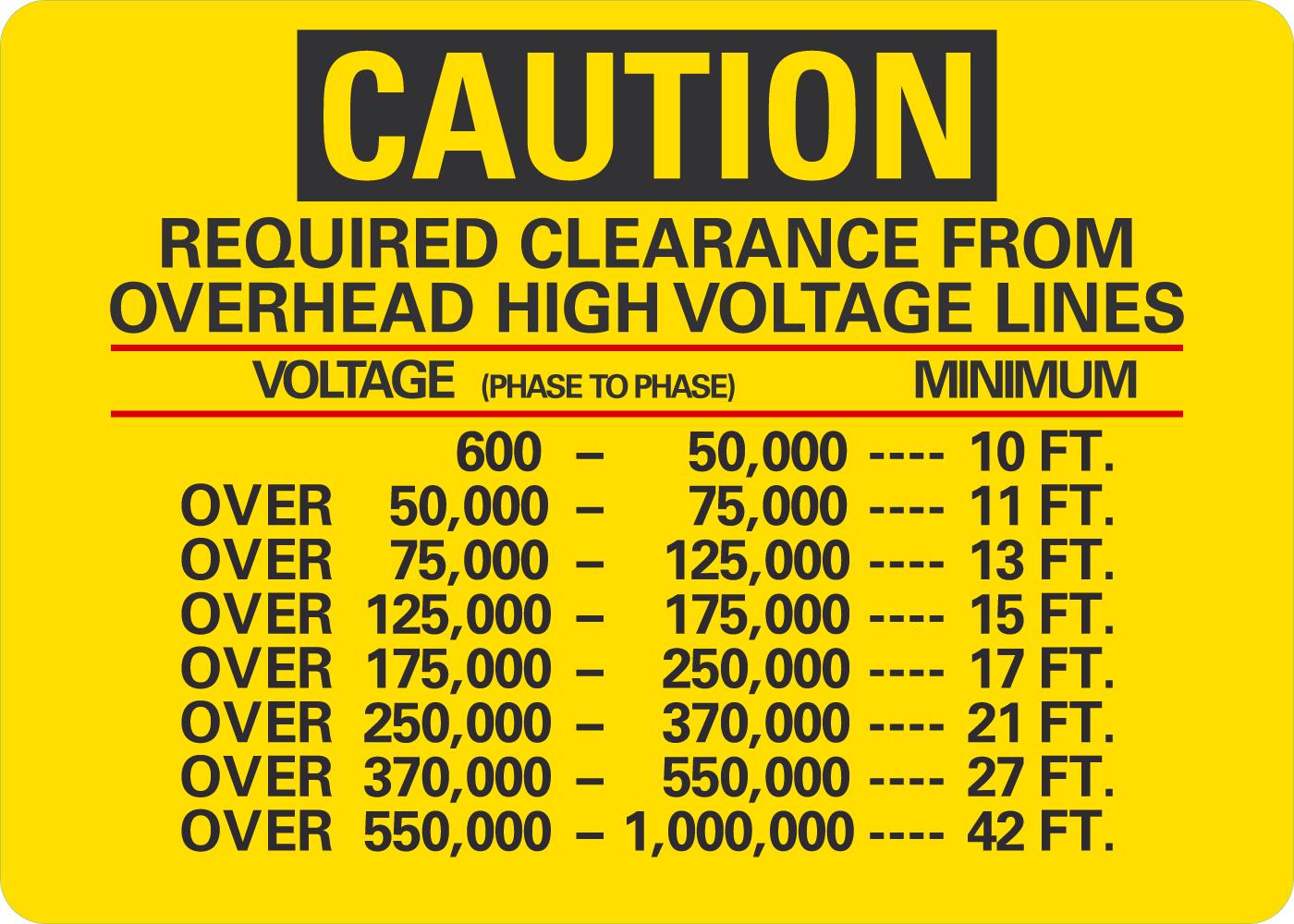 Caution Clearance Sign: Required Clearances From Overhead High-Voltage Lines