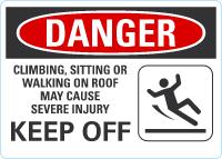 OSHA Danger Sign: Climbing, Sitting Or Walking On Roof May Cause Severe Injury Keep Off