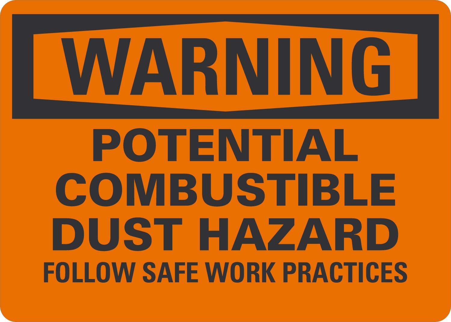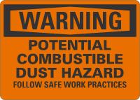 Warning OSHA Sign: Potential Combustible Dust Hazard - Follow Safe Work Practices