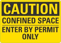Caution OSHA Sign: Confined Space Enter By Permit Only