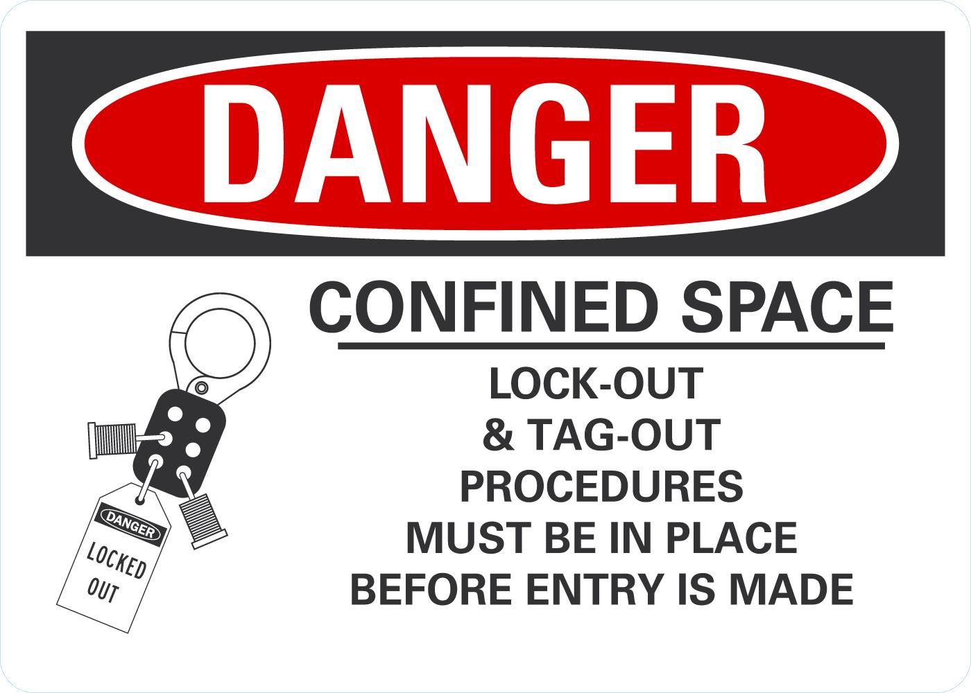 OSHA Danger Sign: Confined Space Lock-Out & Tag-Out Procedures Must Be In Place Before Entry Is Made