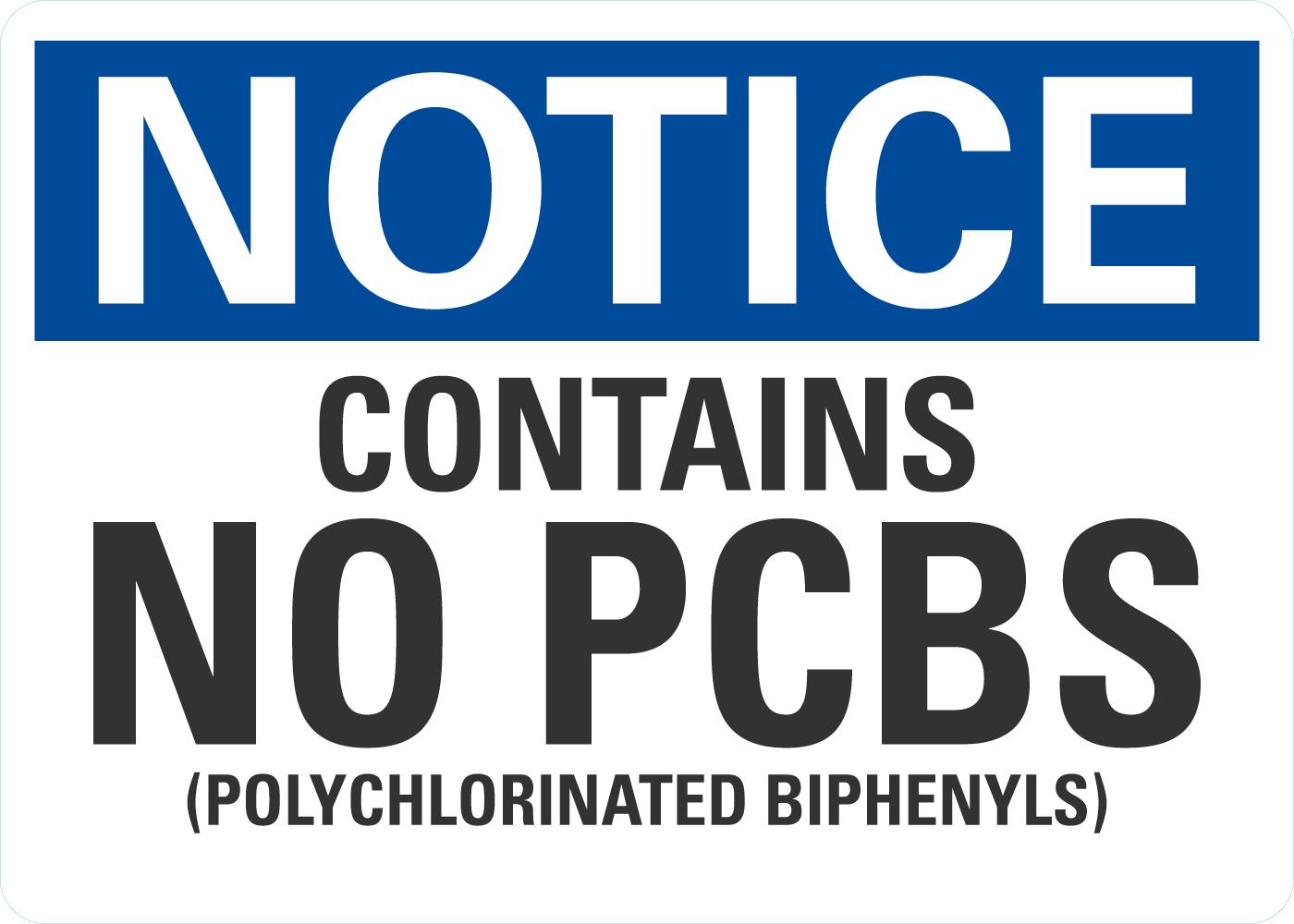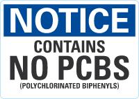 Notice OSHA Sign: Contains No PCBs (Polychlorinated Biphenyls)