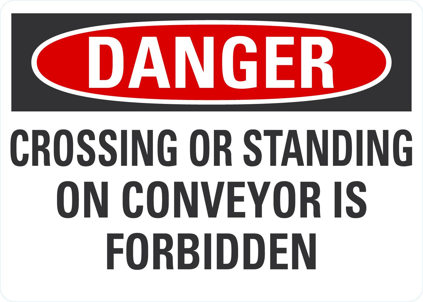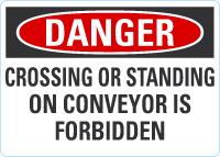 Danger OSHA Sign: Crossing Or Standing On Conveyor Is Forbidden