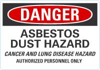 OSHA Danger Sign: Asbestos Dust Hazard Cancer And Lung Disease Hazard Authorized Personnel Only