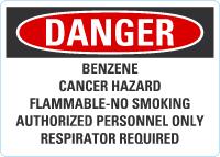 Danger OSHA Sign: Benzene Cancer Hazard Flammable - No Smoking Authorized Personnel Only Respirator Required