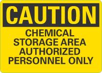 Caution OSHA Sign: Chemical Storage Area Authorized Personnel Only