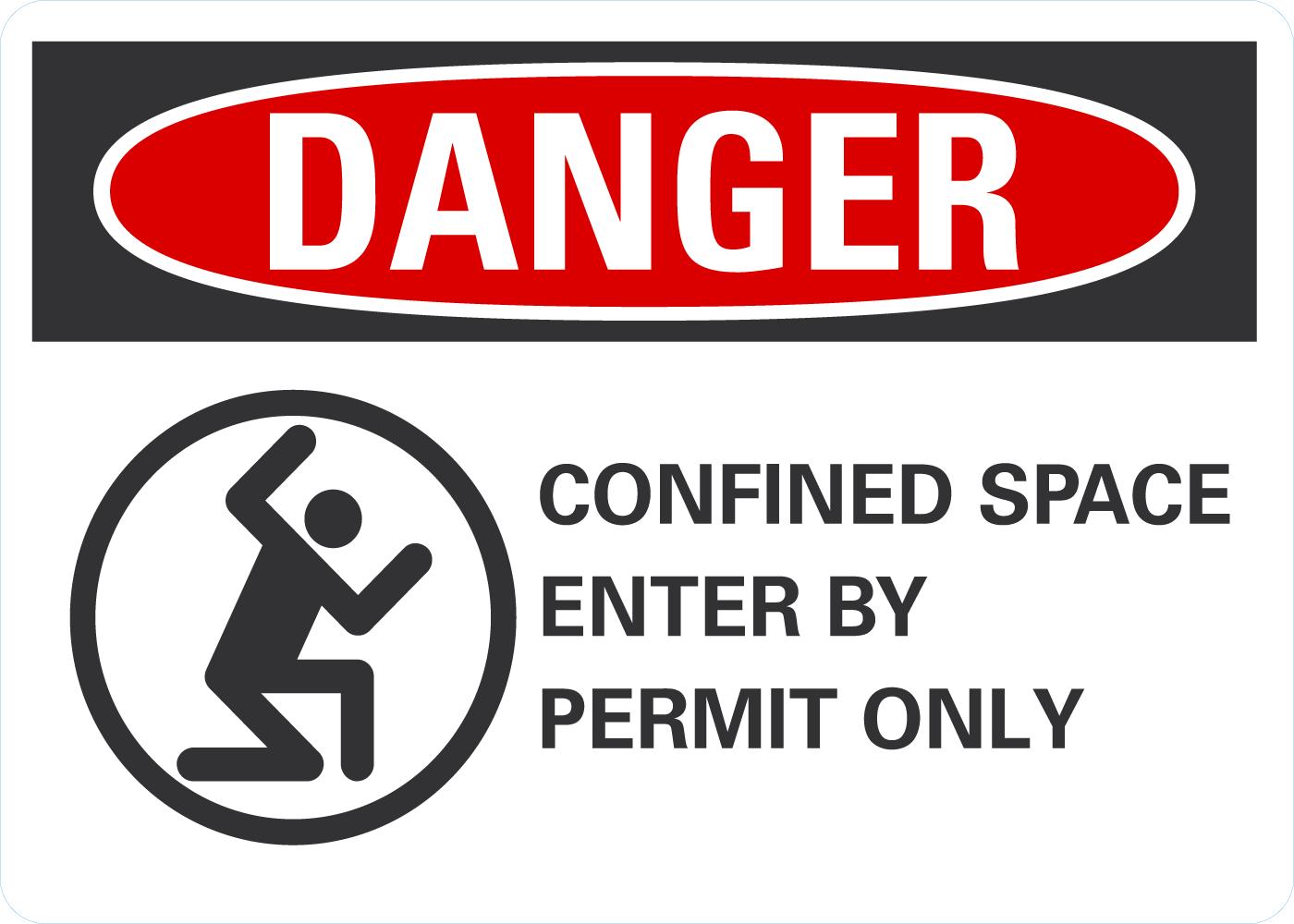 Danger OSHA Sign: Confined Space - Enter By Permit Only (With Graphics)