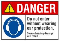 ANSI Danger Sign: Do Not Enter Without Wearing Ear Protection, Severe Hearing Damage Will Result
