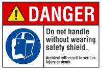 ANSI Danger Sign: Do Not Handle Without Wearing Safety Shield, Accident Will Result In Serious Injury Or Death