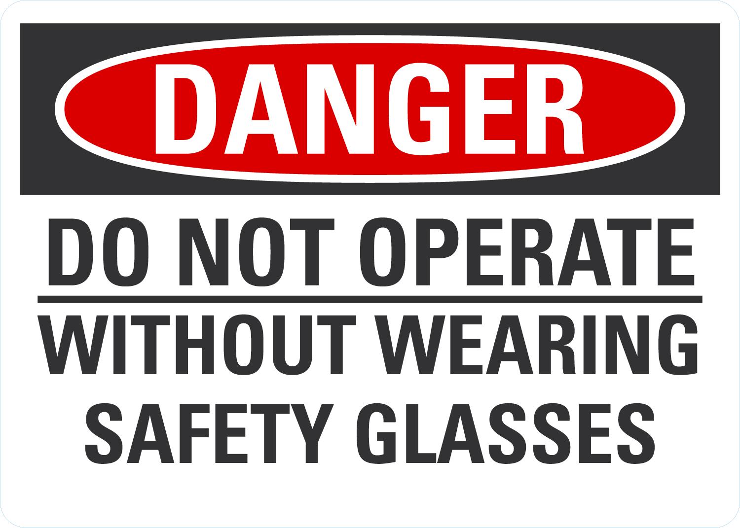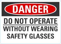 Danger OSHA Sign: Do Not Operate Without Wearing Safety Glasses