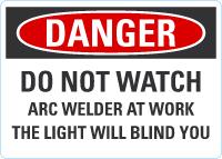 Danger OSHA Sign: Do Not Watch Arc Welder At Work - The Light May Blind You