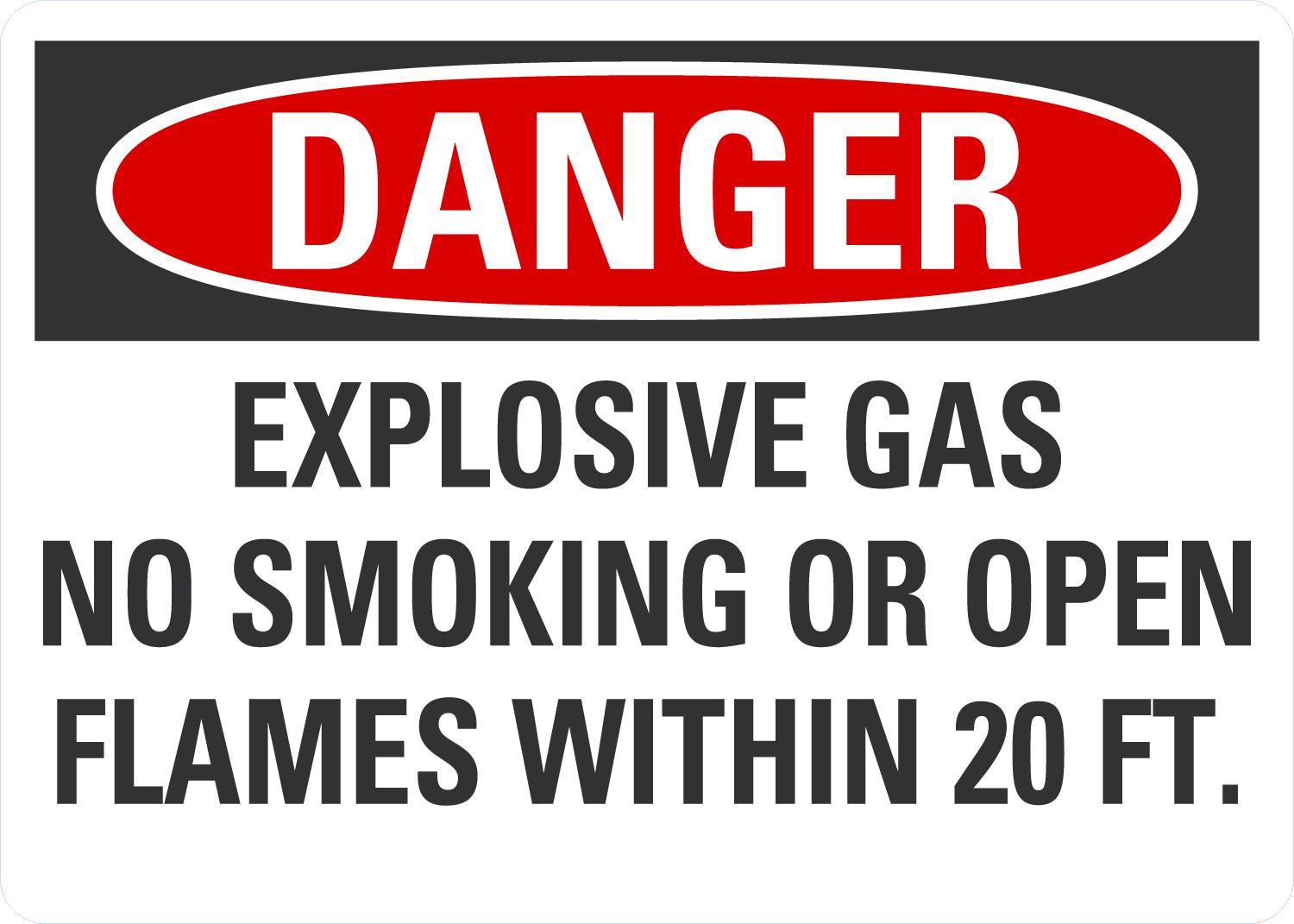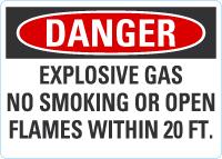 Danger OSHA Sign: Explosive Gas - No Smoking Or Open Flames Within 20 Ft.