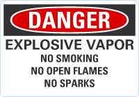 Danger OSHA Sign: Explosive Vapor - No Smoking, No Open Flames, No Sparks