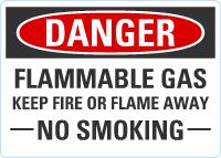 Danger OSHA Sign: Flammable Gas - Keep Fire Or Flame Away, No Smoking