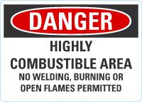 Danger OSHA Sign: Highly Combustible Area No Welding, Burning Or Open Flames Permitted