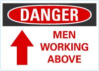 Danger OSHA Sign: Men Working Above (With Up Arrow)