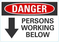 OSHA Danger Sign: Persons Working Below (With Down Arrow)
