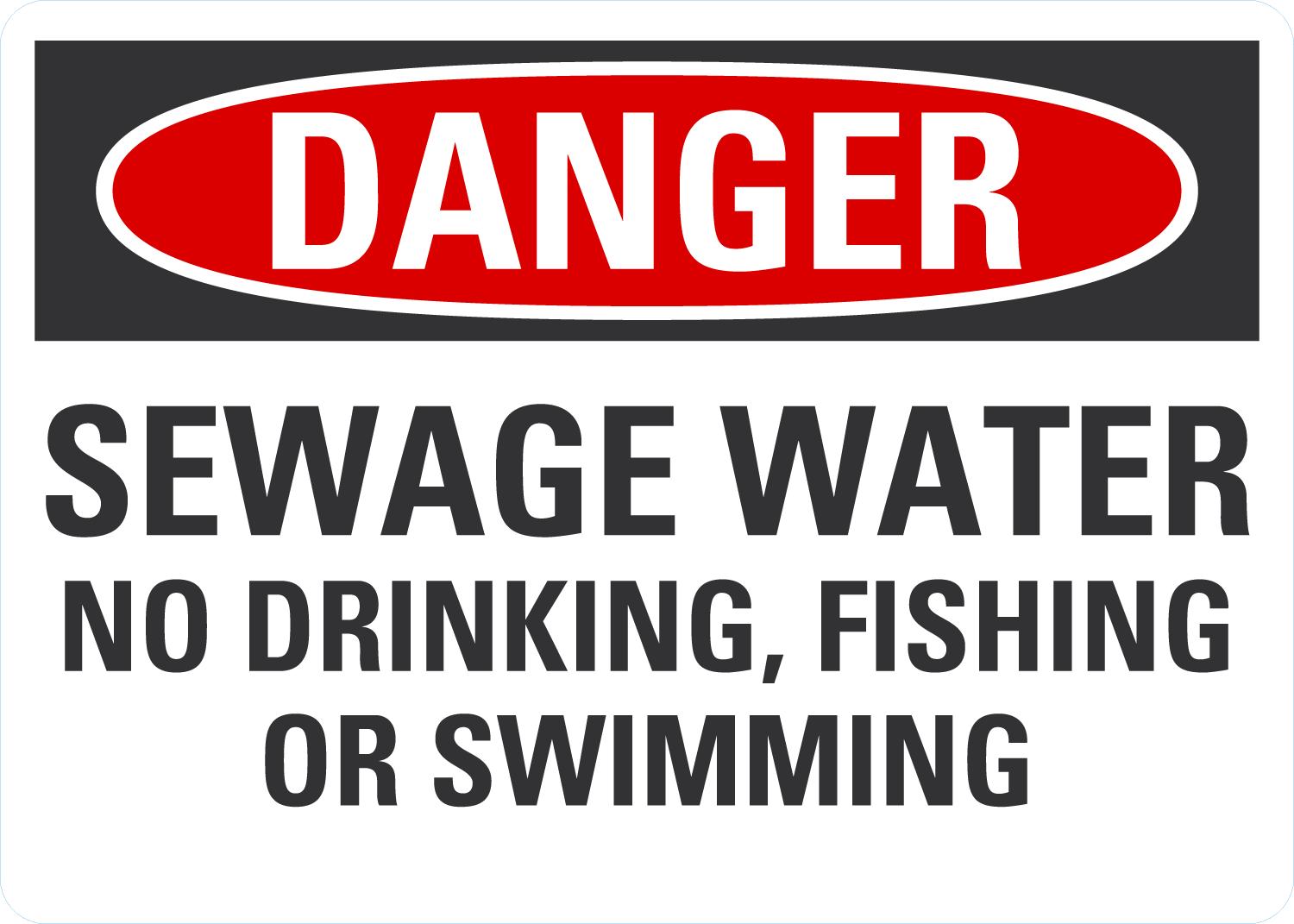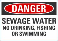Danger OSHA Sign: No Drinking, Fishing Or Swimming - Sewage Water