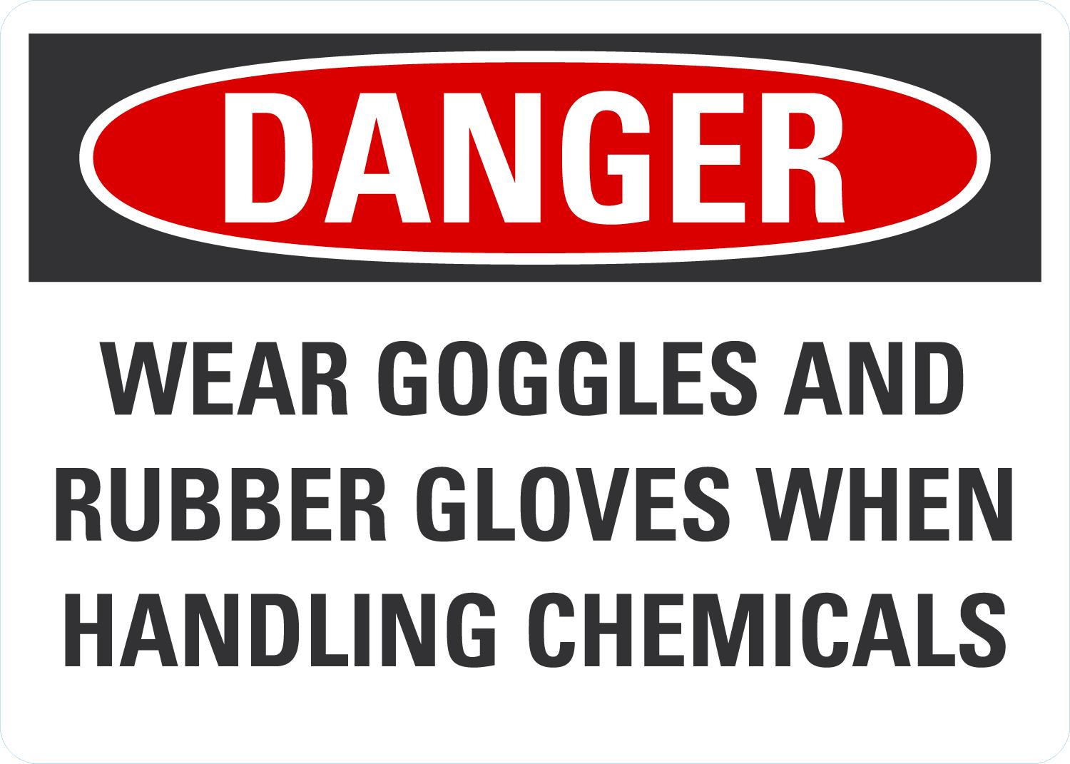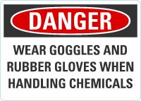 Danger OSHA Sign: Wear Goggles and Rubber Gloves When Handling Chemicals