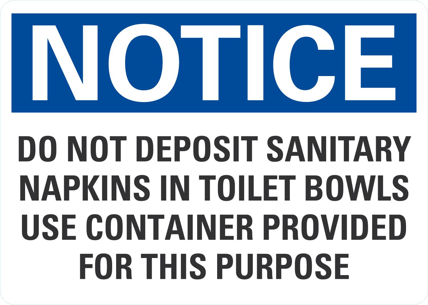 OSHA Notice Sign: Do Not Deposit Sanitary Napkins In Toilet Bowls, Use Container Provided For This Purpose