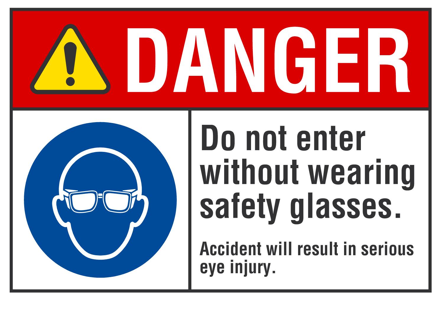 Danger ANSI Sign: Do Not Enter Without Wearing Safety Glasses, Accident Will Result In Serious Eye Injury